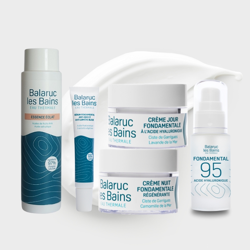 - Un Fondamental 95 : soin anti-âge et anti-rides ultra-concentré en eau thermale et acide hyaluronique. C’est prouvé*, il a un effet tenseur et lisse le relief cutané pour une peau plus ferme et éclatante.