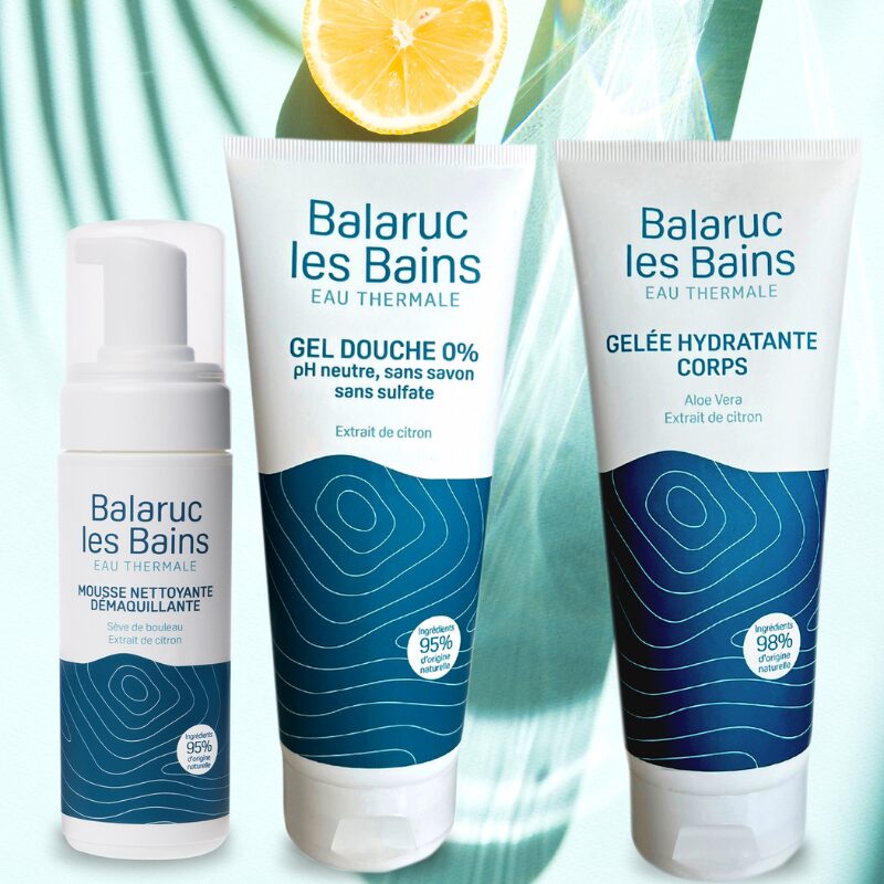 Gelée hydratante corps : Riche en eau thermale protectrice, la Gelée hydratante corps participe à renforcer la barrière cutanée pour maintenir l'hydratation naturelle de la peau. Les notes acidulées de citron meringué la rendent fraîche et gourmande à la fois.